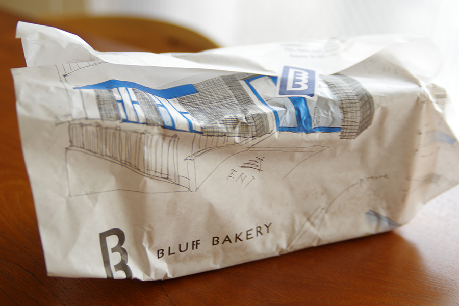 できたての食パンは、こんな感じでオリジナルの包装紙で包んでくれます。