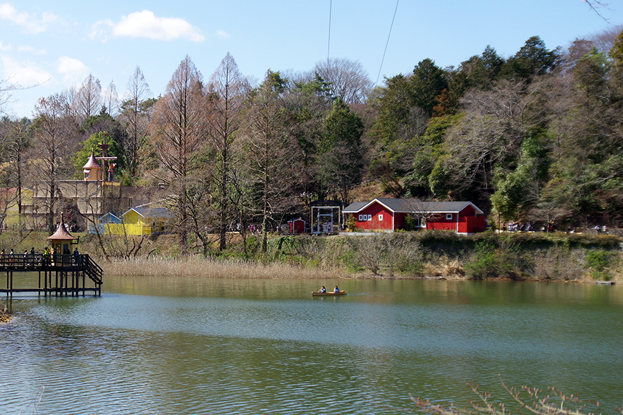 湖畔の道を進んでいくと見えてきたのは、”moomin valley-PARK-(ムーミンバレーパーク)"。ゲート前には絵本を模したフォトスポットがあり、ここを抜けて物語の世界へ入っていくということなのでしょうね。