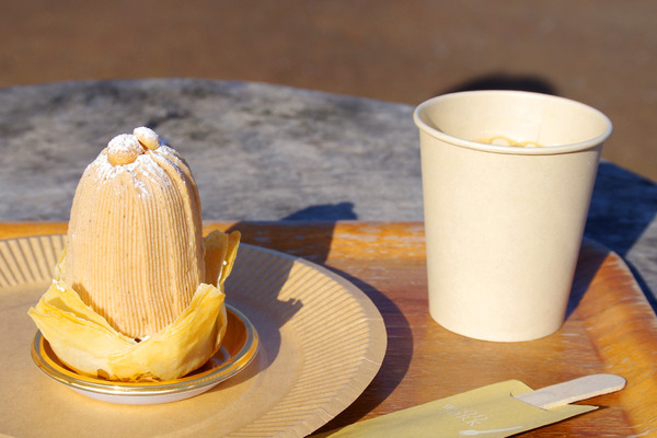 室内の席はまだランチ用ということで、屋外のテラス席でティータイム。オーダーを間違えてしまって和栗ではなく洋栗のモンブランでしたが、パリパリのパートフィロを土台にした濃厚なモンブランを味わえました。