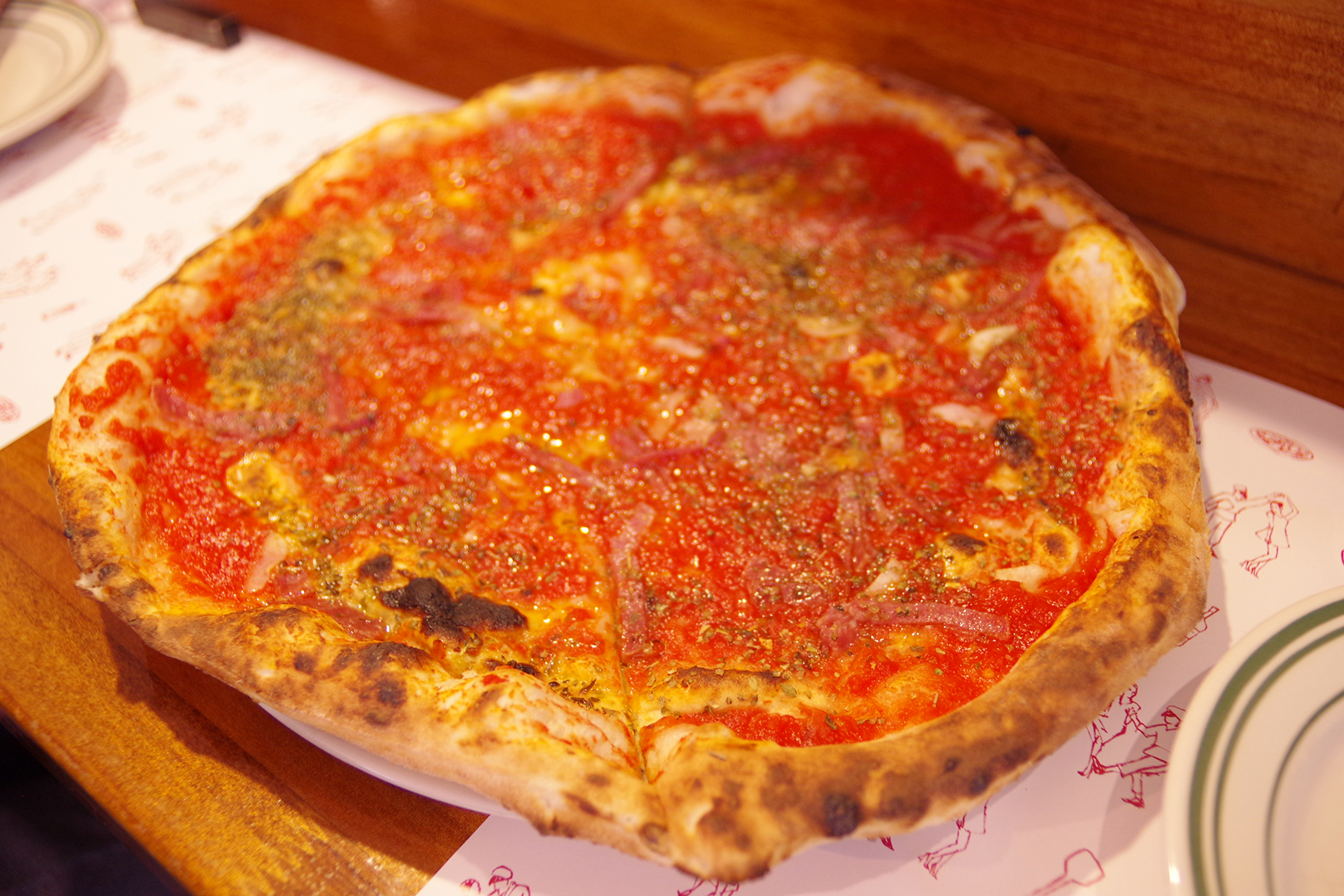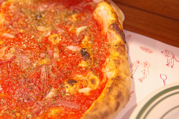 もう一枚はいつもはマリナーラですが、あまり来られないお店だからと「マリナーラ コン サラメ」を。基本のトマトソース、オレガノ、ニンニクに細切りのサラミがプラスされています。
