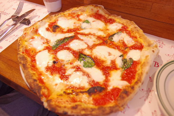 初訪問ということで看板メニューの「マルゲリータ500」。0cmは超えているでしょうか、お皿からはみ出るほどのサイズです!