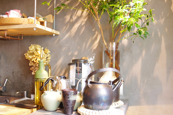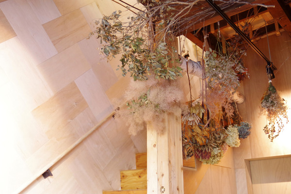 前日晩にふと思い立って予約の電話を入れたのですが、1Fカウンターの最後の席に滑り込みで入ることができました。食事中に何組も断られていたので、ギリギリでも席が取れてよかった。。ドライフラワーが天井から吊り下がり、木を多用した明るい店内です。