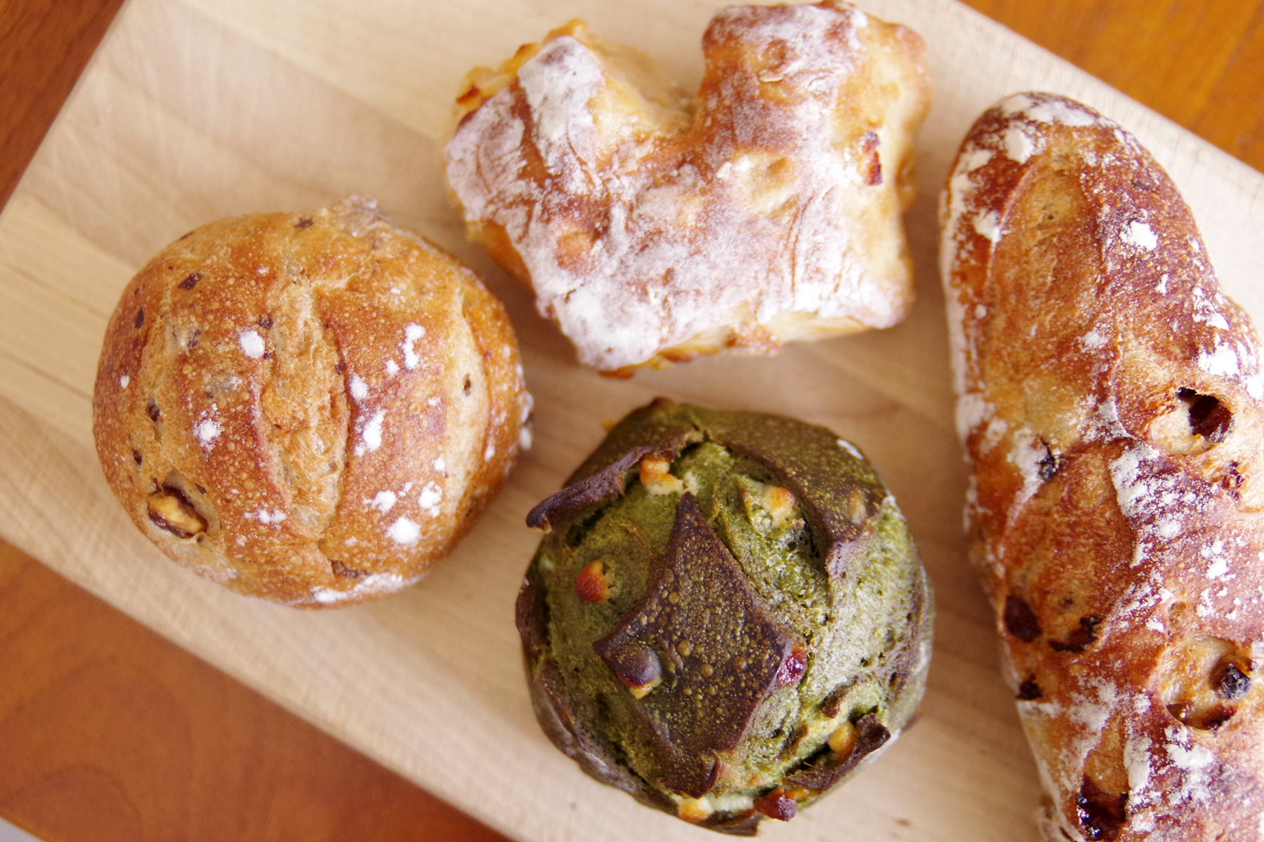 その他には「バニーユ」「リンゴとクルミ」「抹茶とホワイトチョコ」「レーズンとレーズンとレーズン」などなど。「抹茶と〜」は濃い抹茶がクセになって毎度買い求めてしまいます。そう思うと、移転前の群馬県・高崎の頃からのラインナップのものも少なくないのですね。