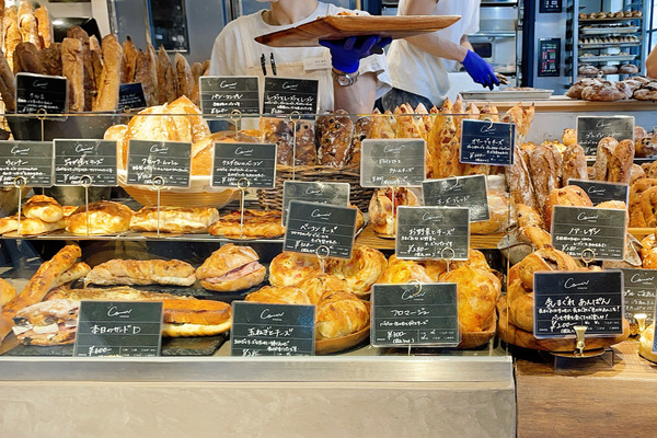 午前の早めの時間から、もうフルラインナップ!?以前と変わらず店員さんにパンを取っていただくシステムですが、パンの説明や店員さん同士の声掛けなどで活気に満ちていました〜。