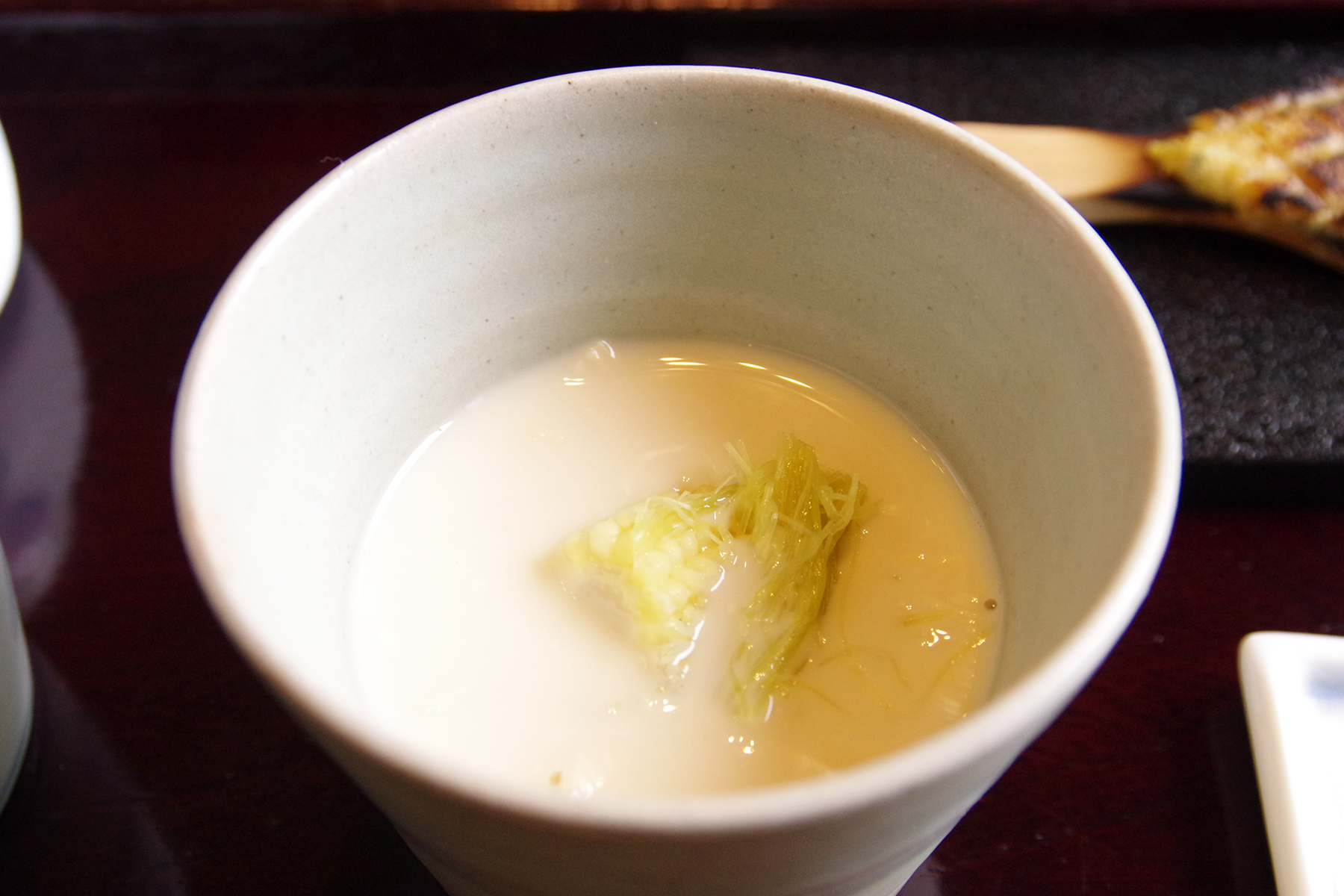 引き揚げ湯葉をツルツルと。と中に旬のヤングコーンがあるではないですか!何を隠そうトウモロコシを育てる際に摘果されたヤングコーンに目がなく、道の駅などで見ると必ず買ってしまうほど。ヒゲも甘く、より嬉しい一品でした。