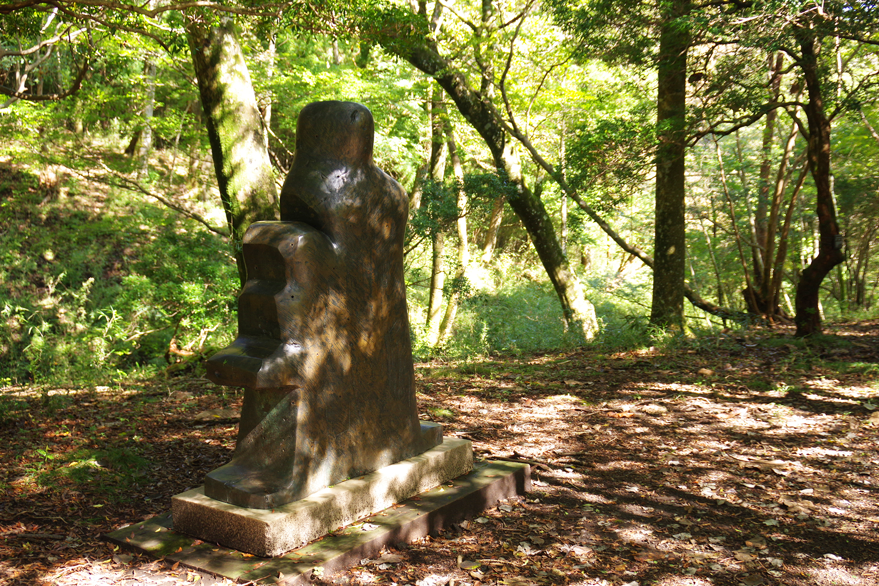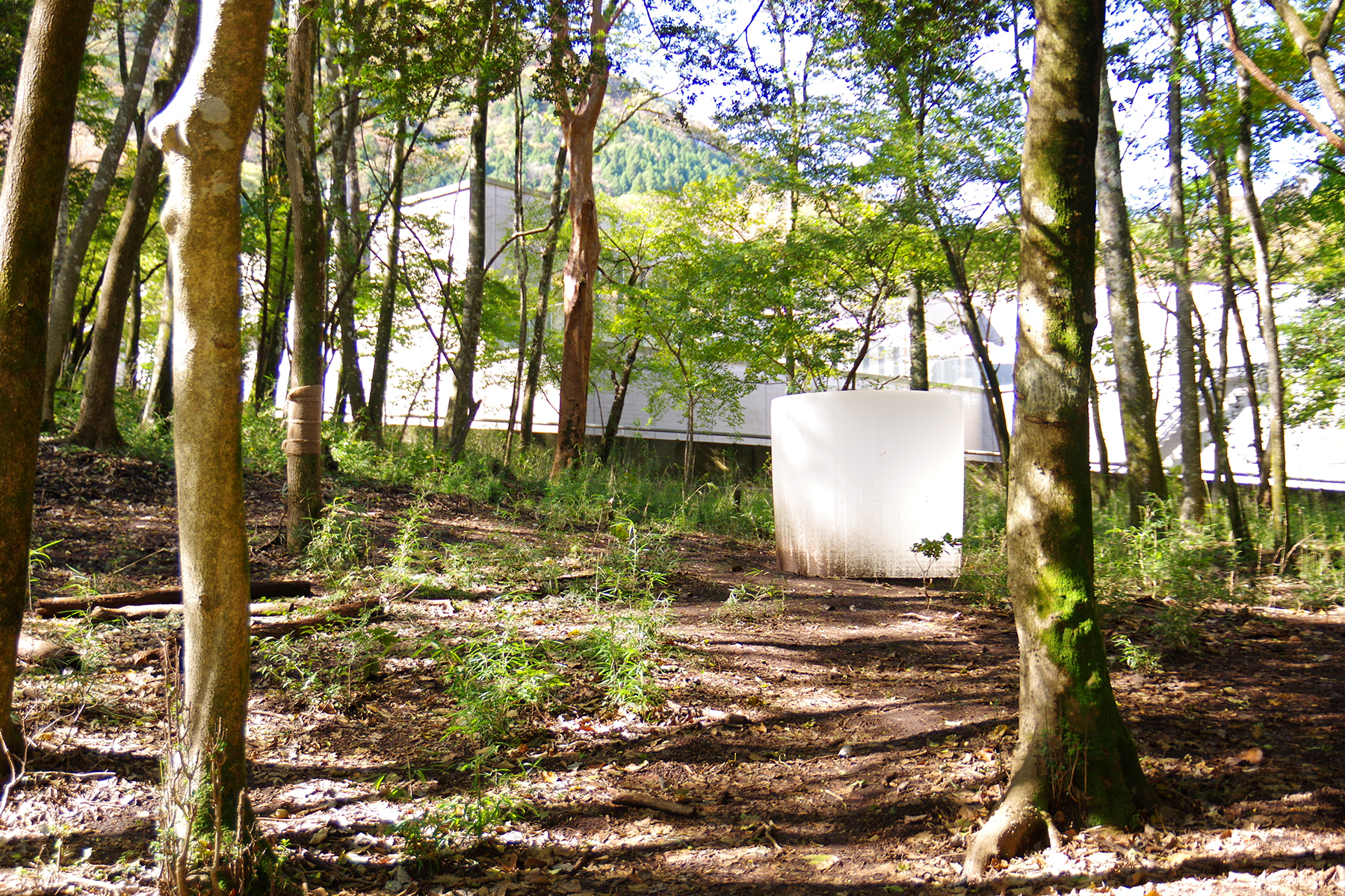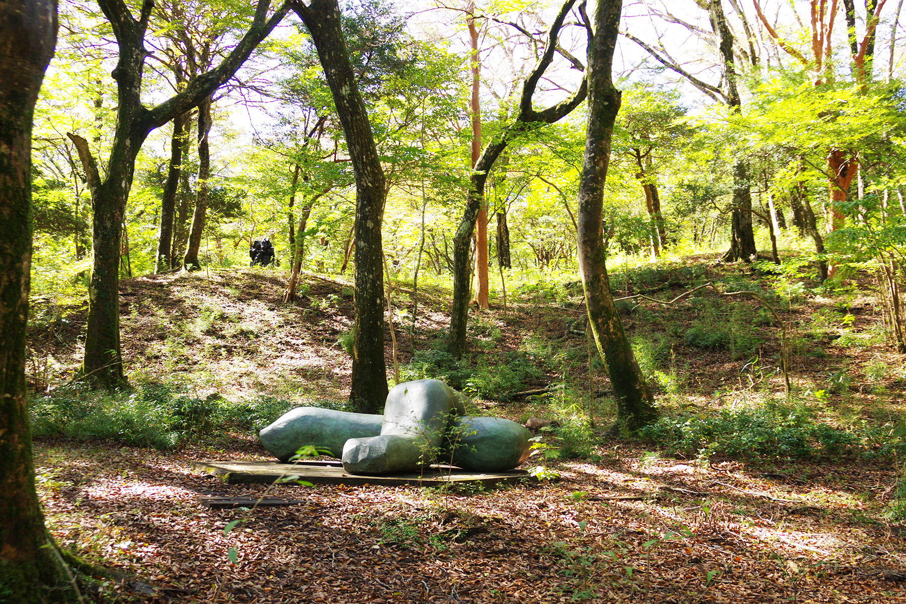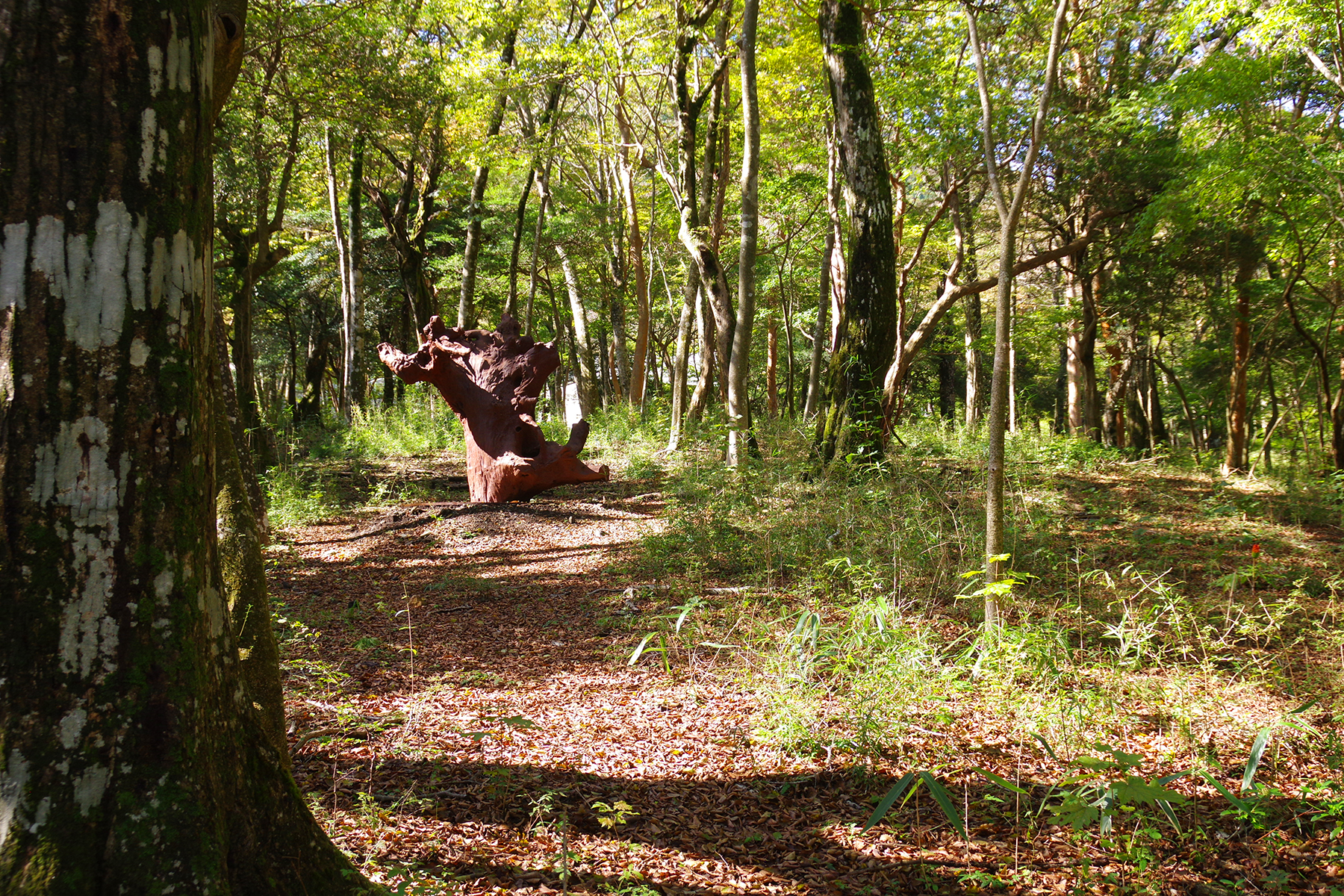 今回の企画展の続きとなるのは、遊歩道近くから森の中へと分け入っていくこちら。