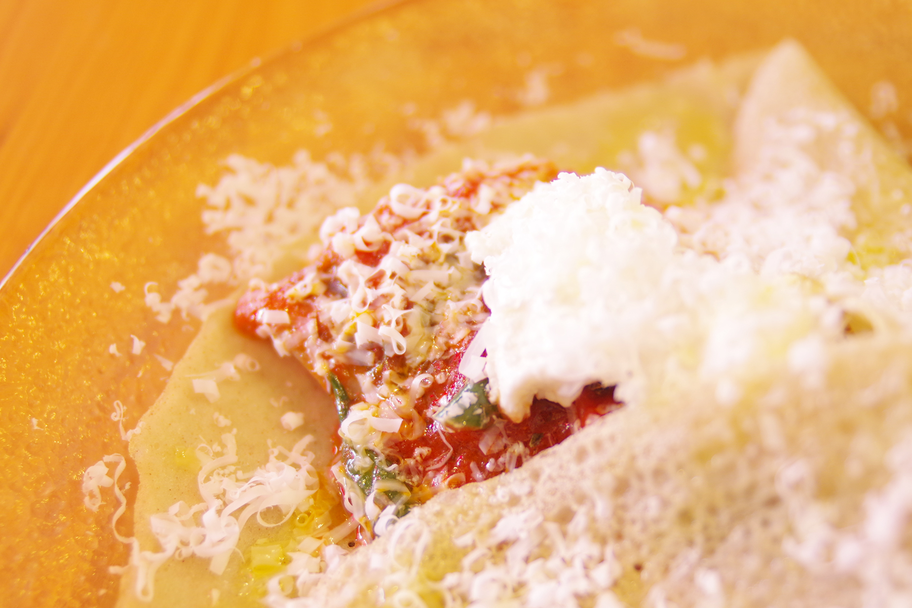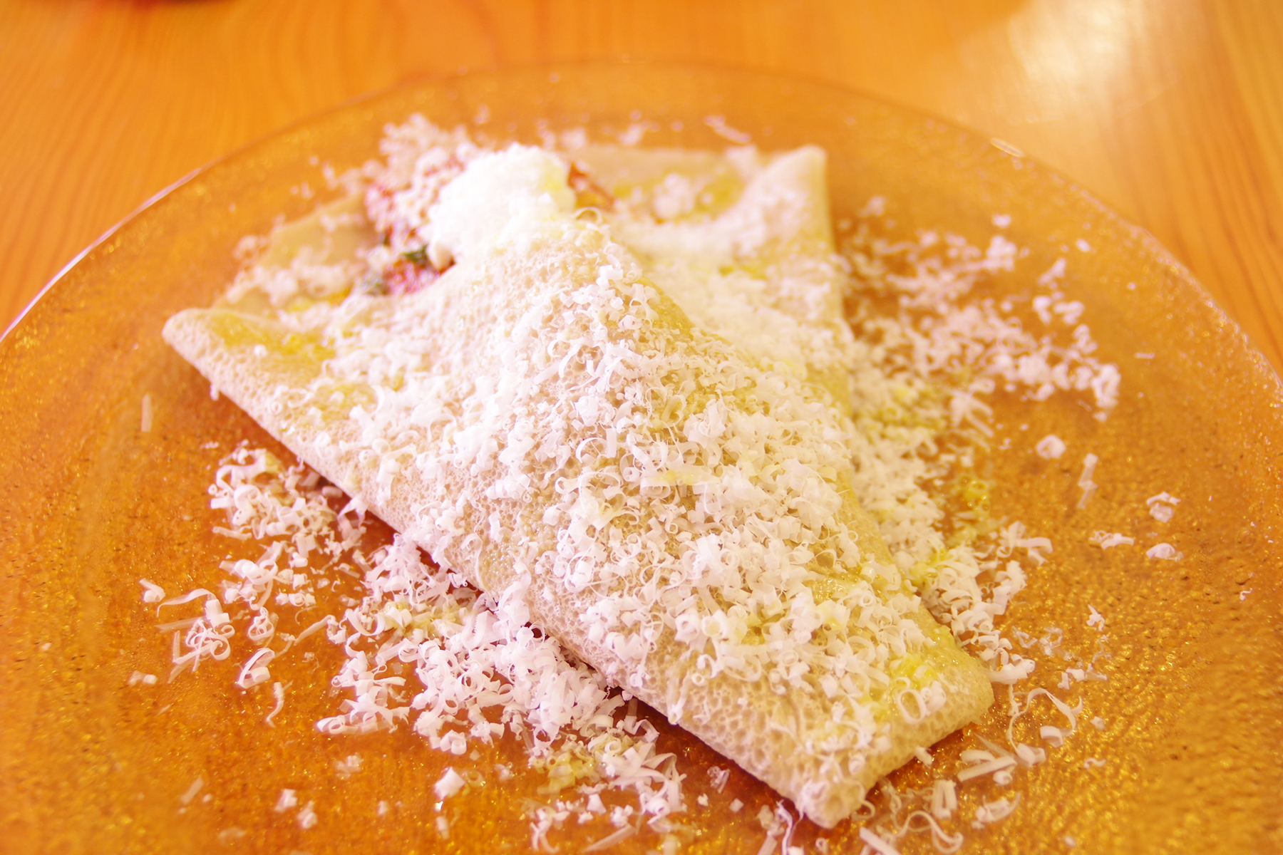 前菜というよりはもはやメインの大きさ!アジは中にたっぷり半身分、そして中にはフレッシュのリコッタ、外にはリコッタを塩漬けしたものを熟成させたものと、2種のリコッタチーズの合わせ技です。