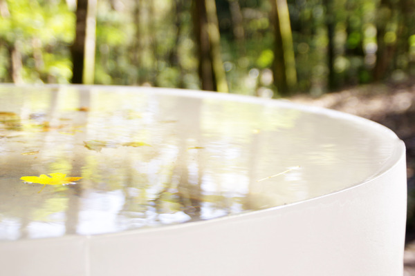 屋内展示との違いは中に本当の水が張られていること。昨日の雨が風を受けてわずかに波立ち、ヒラヒラと舞ってきた落ち葉が水面を飾っていました。この後も常設展示されるそうなので、さまざまな表情を見せてくれるのでしょうね。