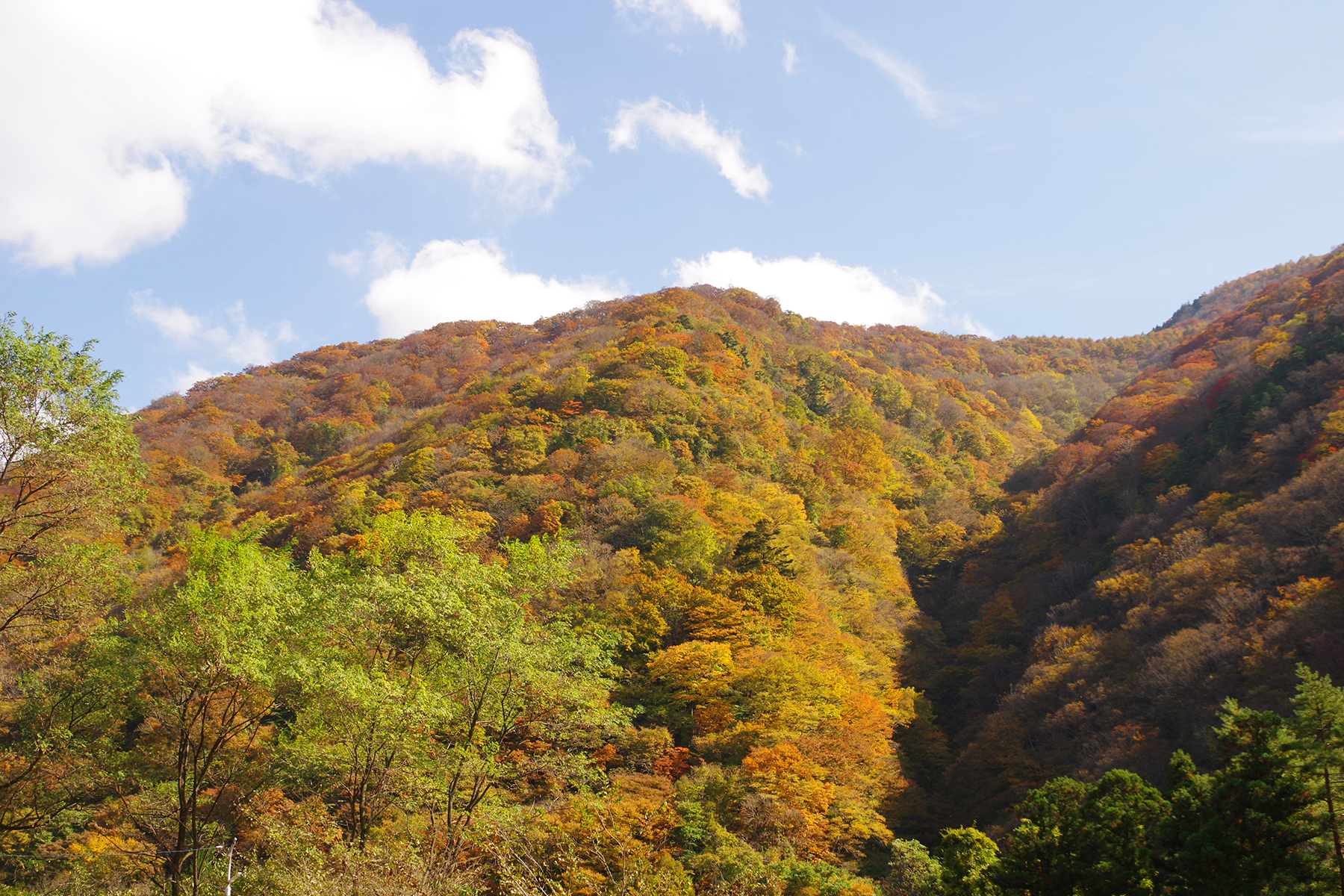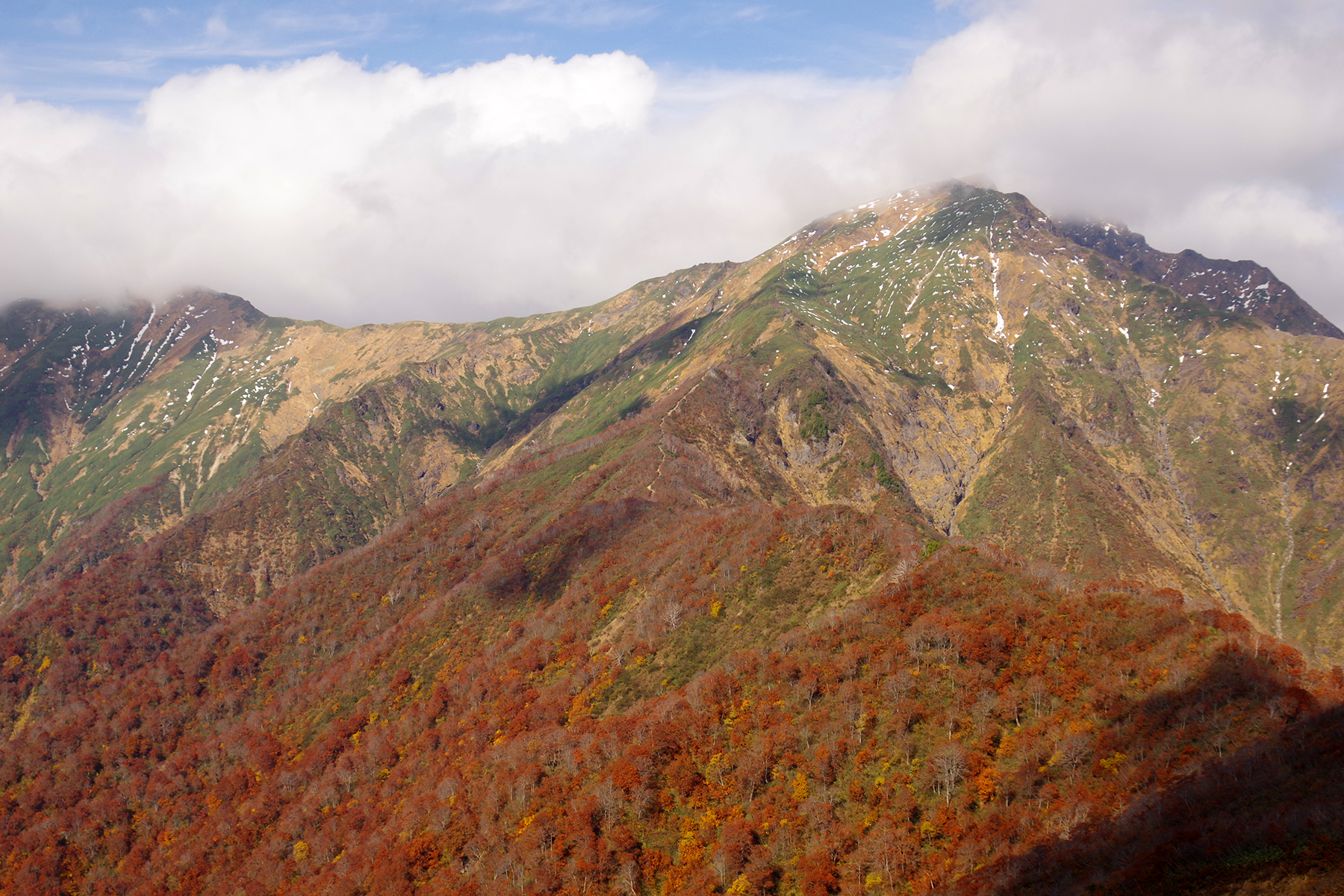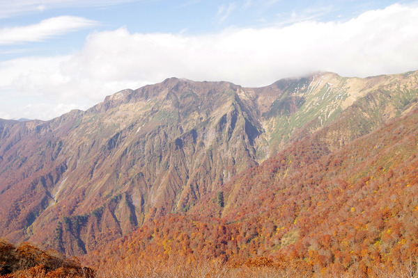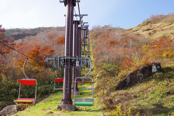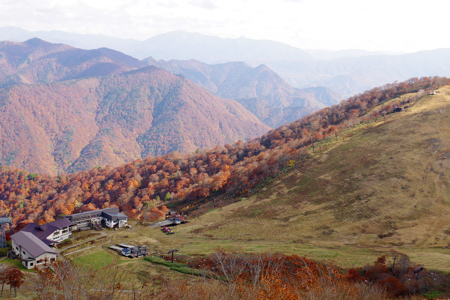 目の前には百名山、標高1,977mの谷川岳。10月18日には初冠雪を観測したそうですが風で吹き飛ばされているのでしょうか、その下は綺麗な紅葉が広がっています。