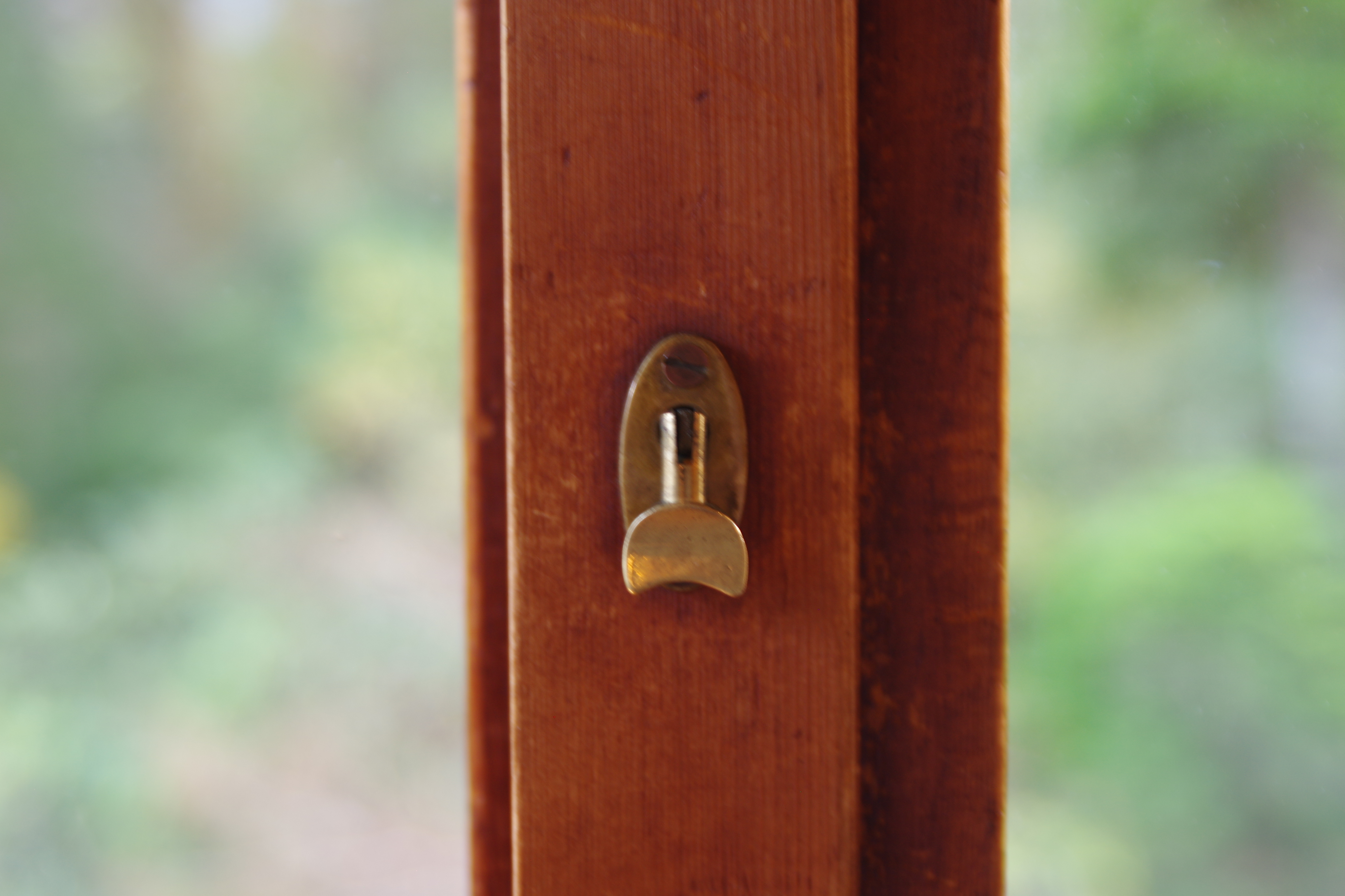 昭和初期に建てられ大切に引き継がれてきた建物は細部まで美しく、じっくり見ては感動している我々2名。こちらは今見てもデザイン性の高いネジ締り錠、鈍い艶を放つ真鍮にも年を経た味わいを感じますね。
