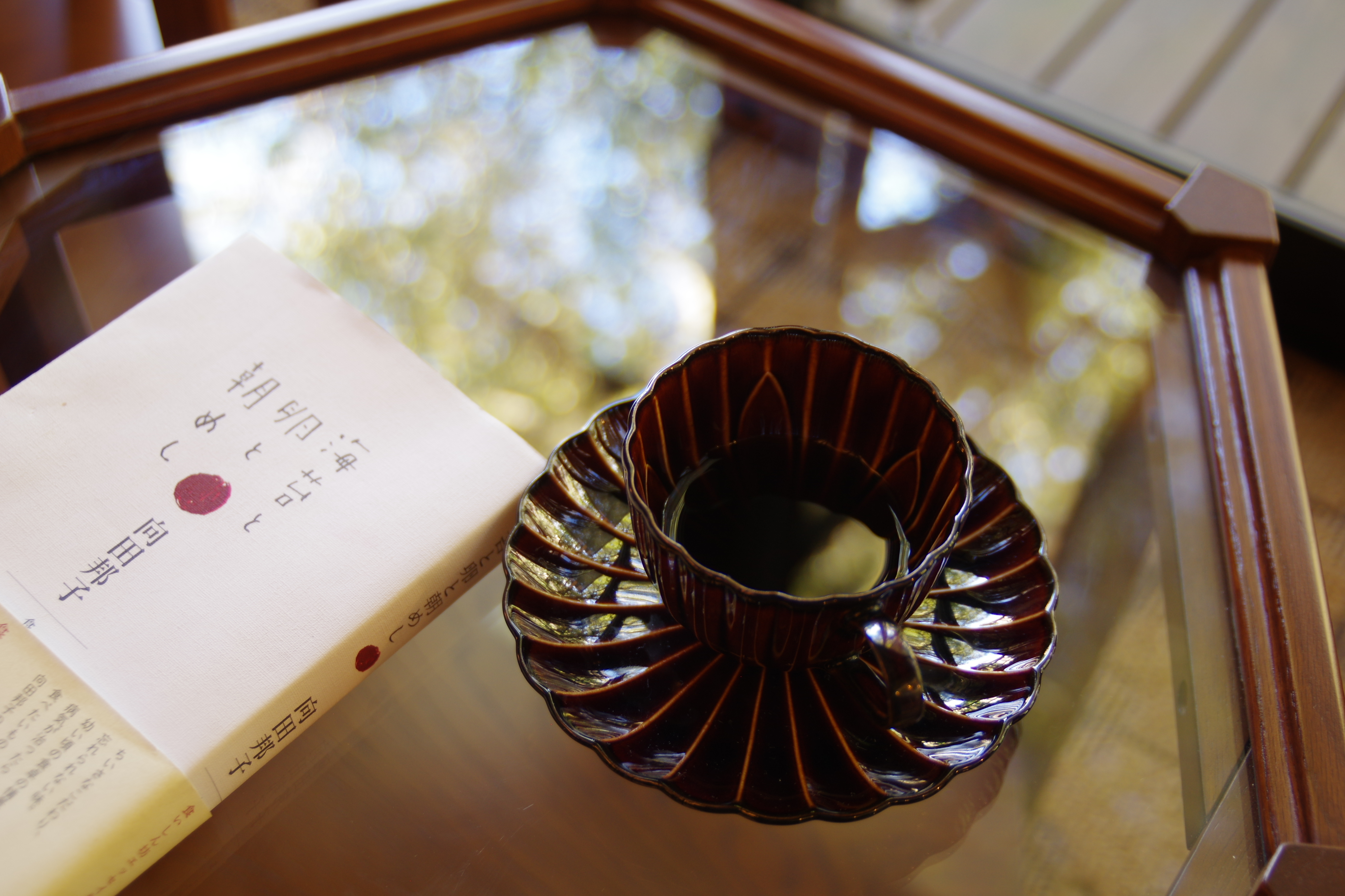 そのなかの一冊を手にとって、食後の珈琲を楽しみます。