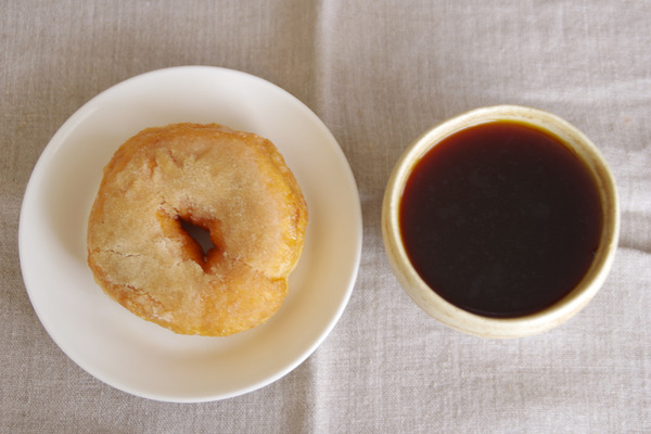 「ドーナツ」は油で揚げたオーソドックスなもの。みっちりとした食感の生地にきび砂糖のやさしい甘さがよく合っています。これに合わせたのは同じく山梨にある寺崎COFFEEのシングルオリジン。