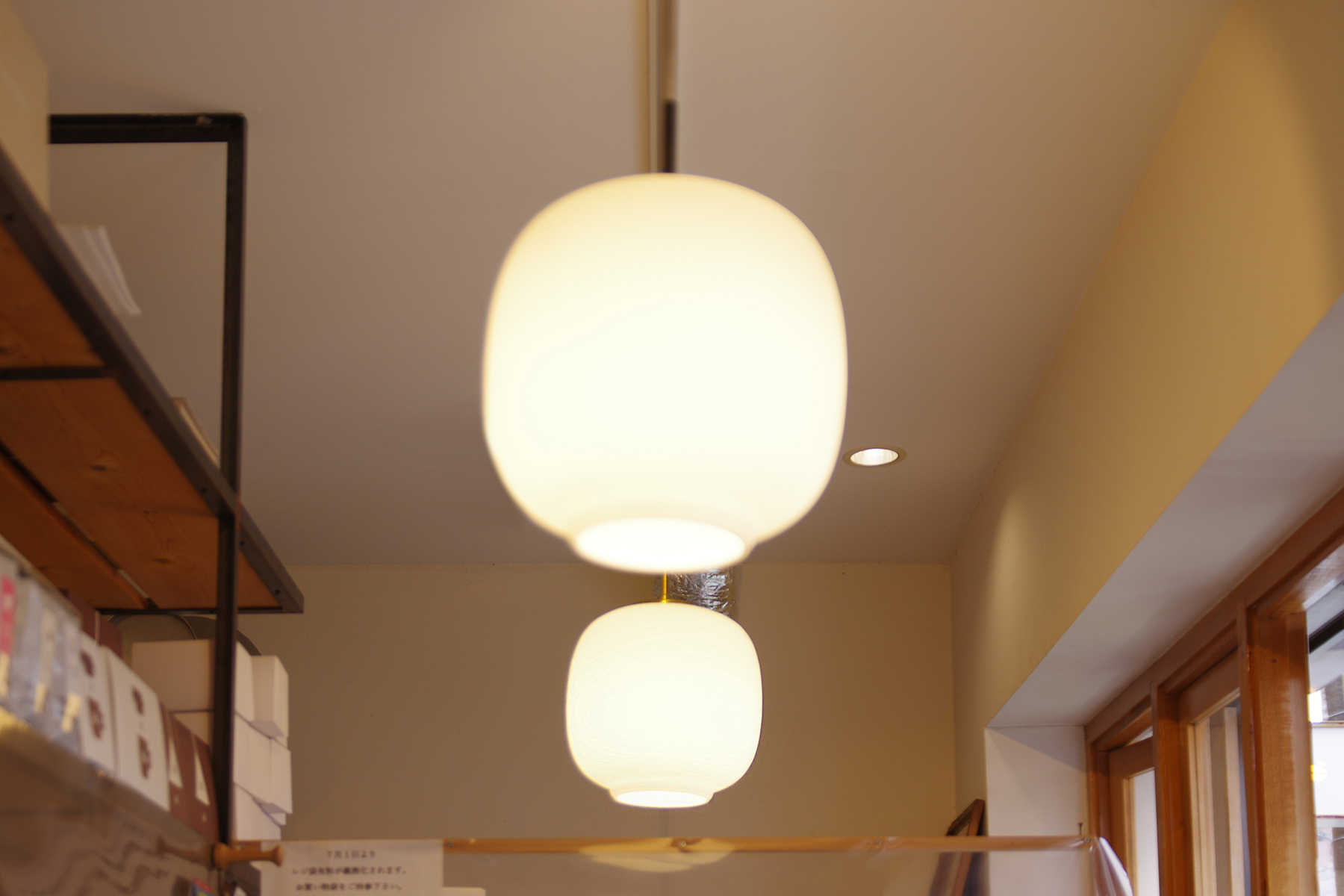 天井を見るとLauritzenのRadiohus pendel(復刻版の方かしら)。外からも見える位置に吊り下がり、北欧家具屋としてはとても嬉しくなってしまいました。