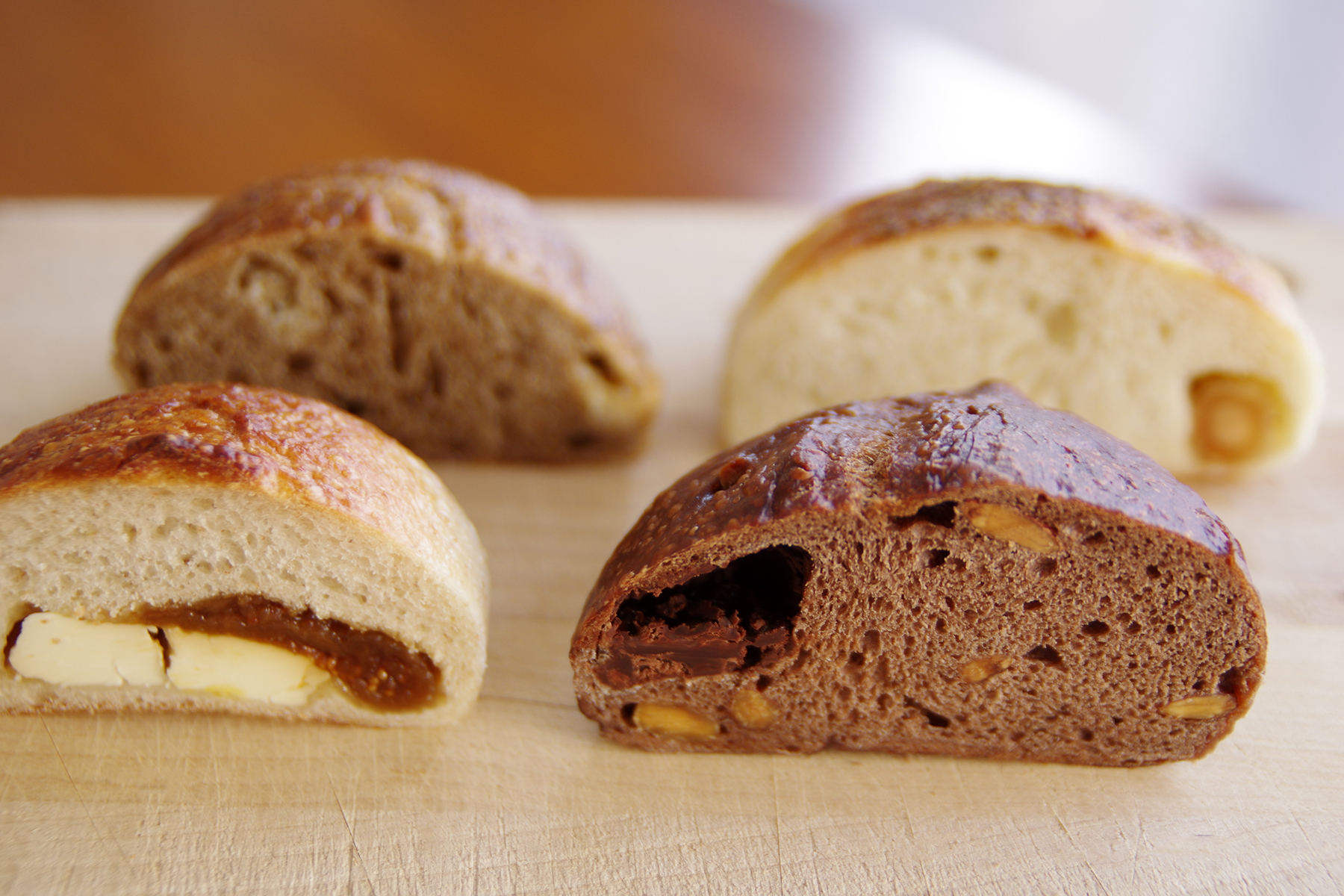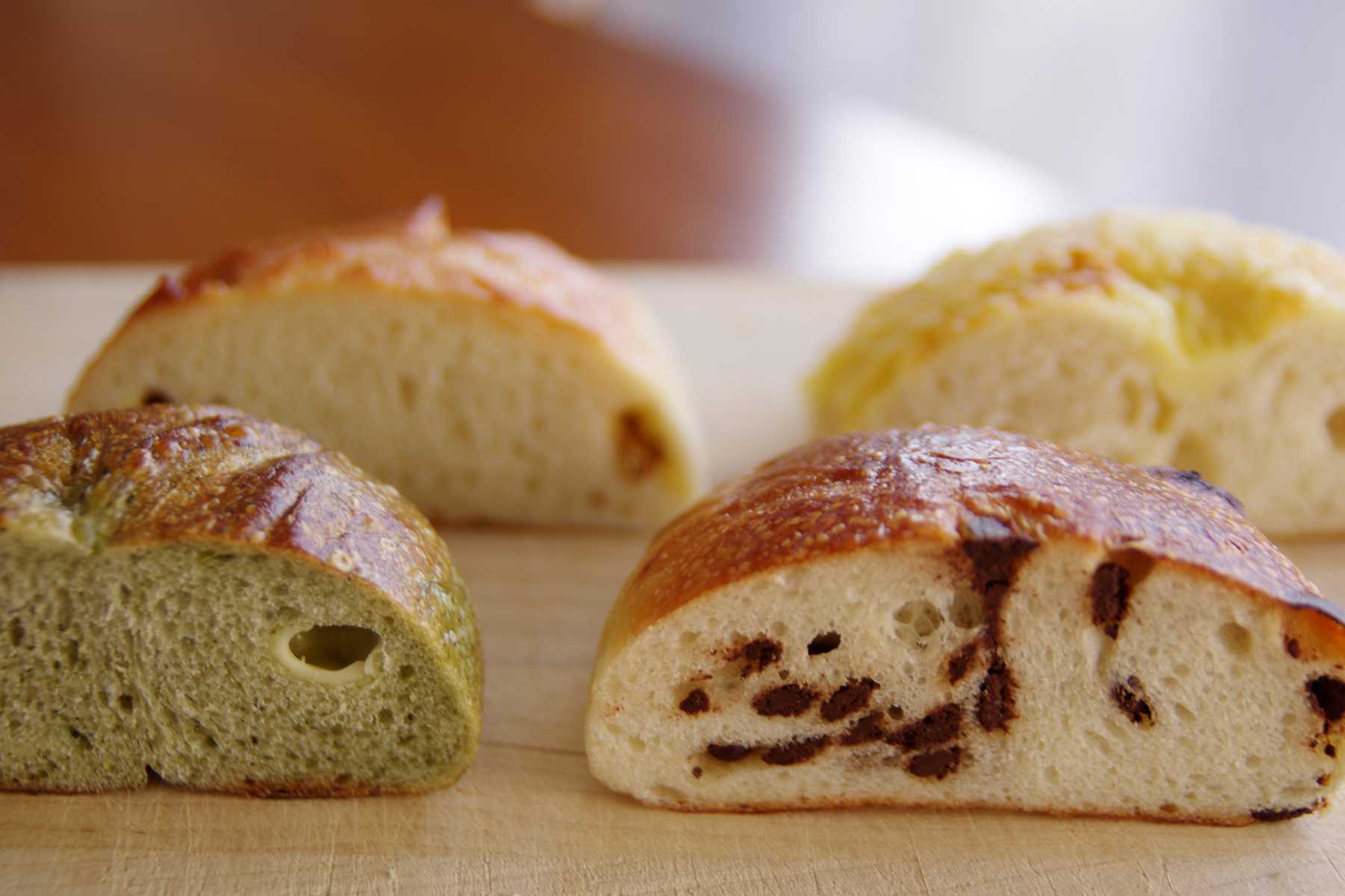 そして選んだのは右上より「チーズ」「チョコチップ」「ほうれん草チーズ」「ボロニアソーセージ粒マスタード」