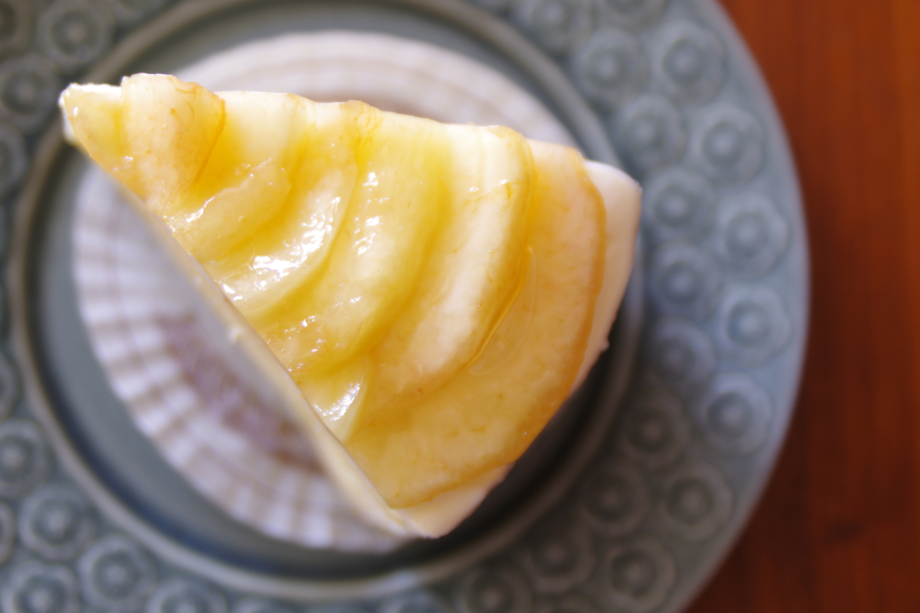 レモンシロップに少々漬けた桃のスライスが綺麗に並びます。