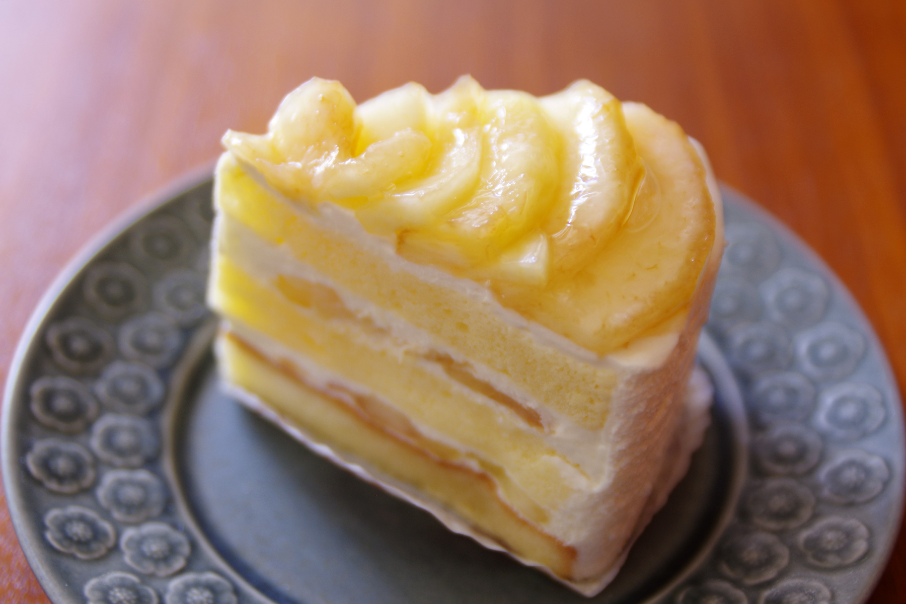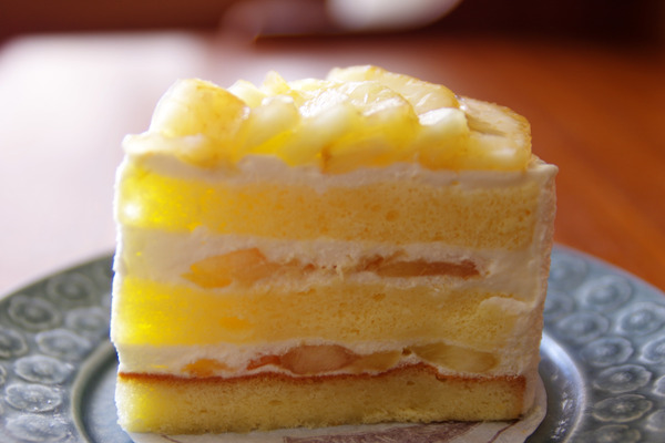 口溶けの良いジェノワーズ生地、程よい甘さのクレーム・シャンティ、そして主役の桃、どれもが口に入れるとパッと同時に散ってゆくよう。この3者のバランスも素晴らしいのだよなぁと、味わいながらいただきました。