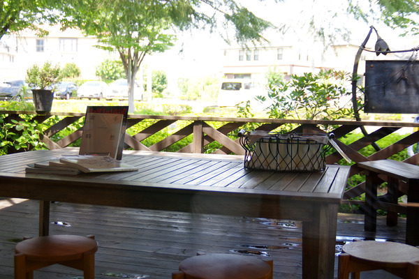 お店前にある休憩スペース。この時期は自家製ジンジャーシロップを水割りにしたドリンクを無料でいただけます。行きと帰りに一杯づつ、キリリと強めにジンジャーが香る絶品ドリンクをありがたくいただきました。