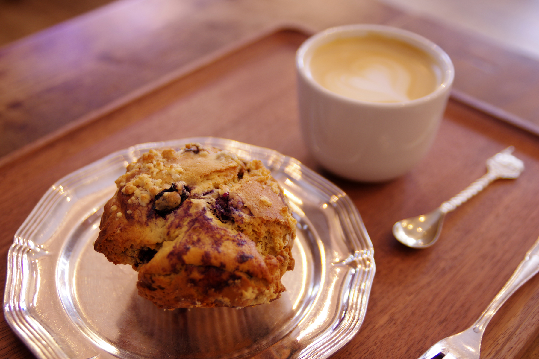 ドリンクと一緒に頼んだのはブルーベリーマフィン。他ではほとんどいただかないマフィンですが…こちらのものは格別でつい手が伸びてしまいます。