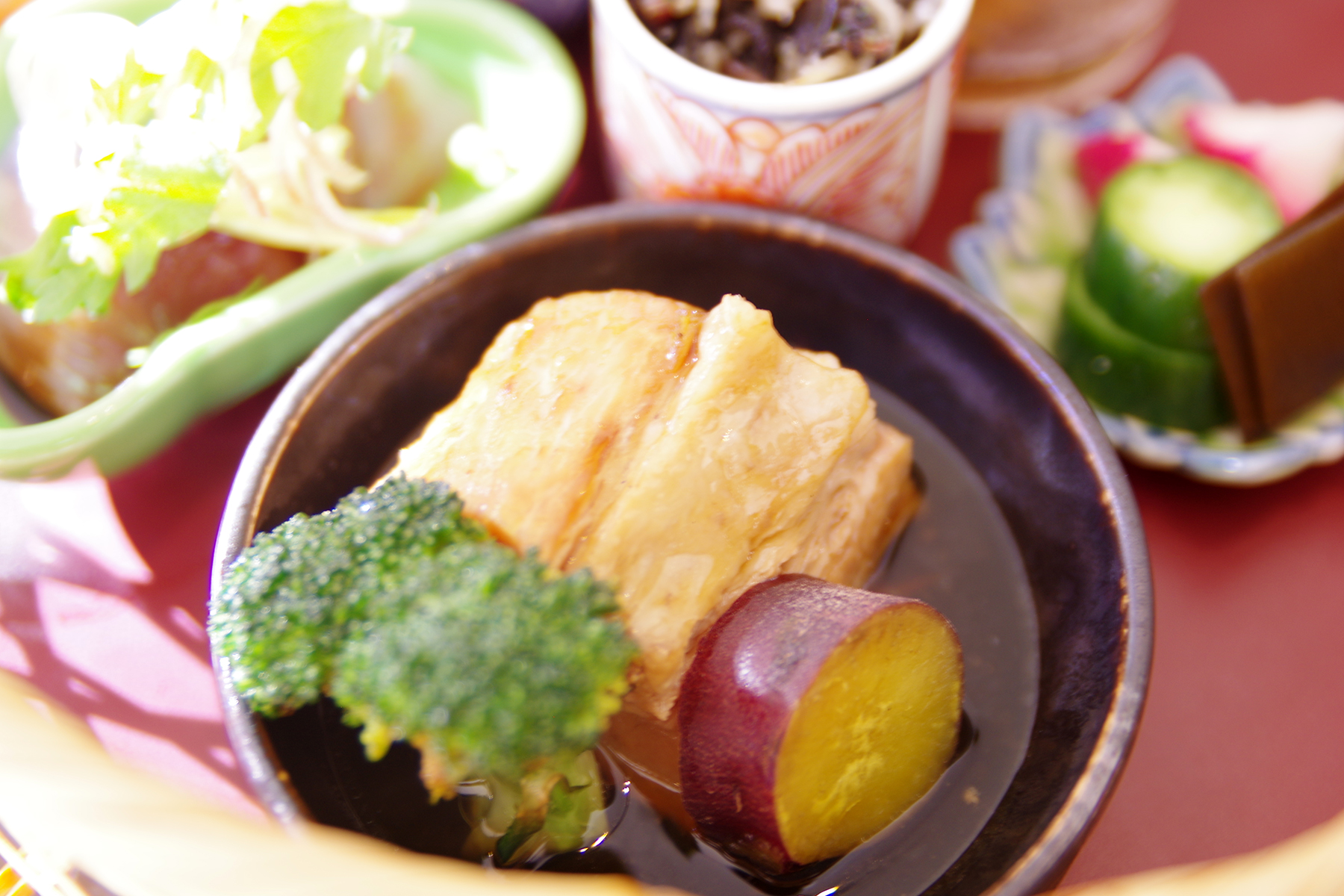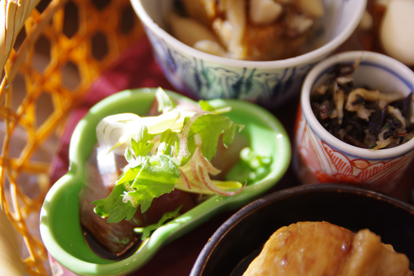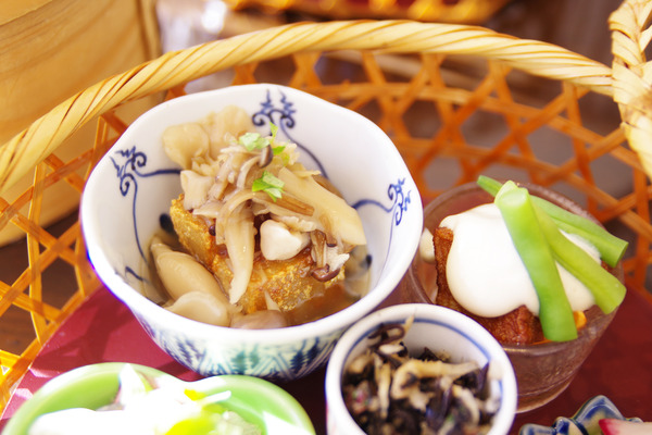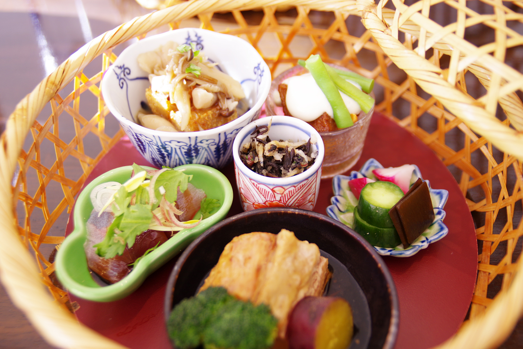 オーダーした茶房膳はこんな可愛らしい籠でやってきました〜。