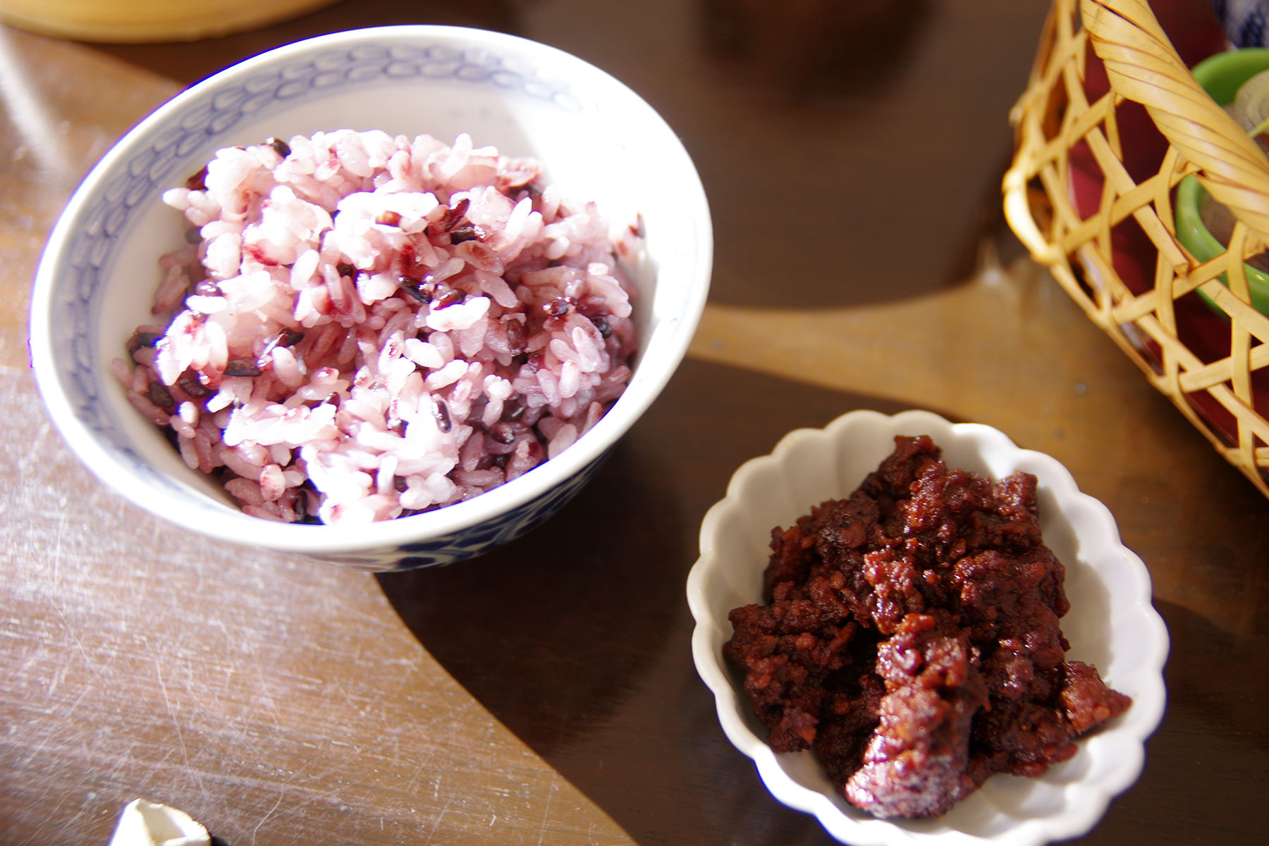 それに黒米ご飯、味噌汁、鶏肉味噌。