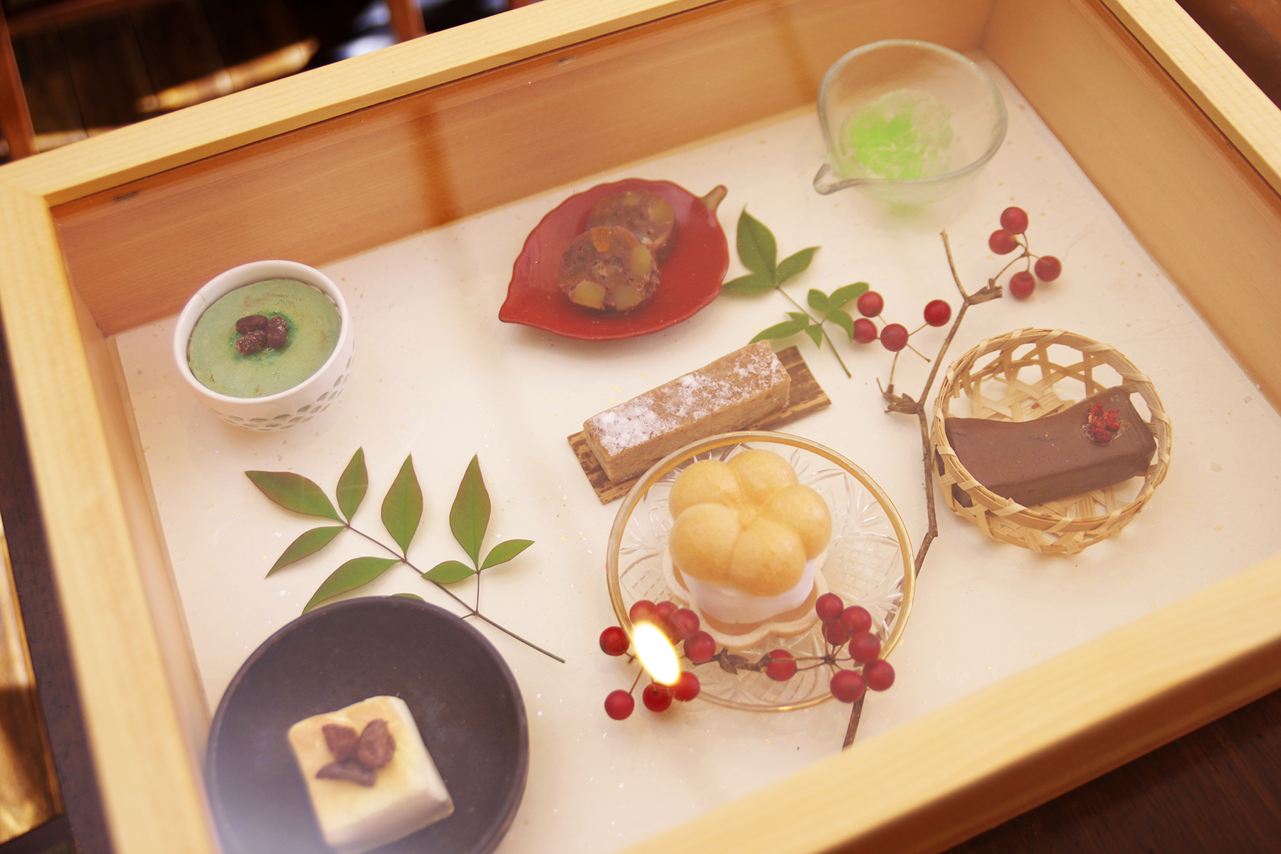 食後のデザートは木箱に入った7品から2つチョイスできるので、悩みつつ選んだのは…