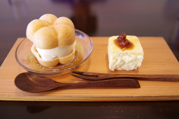 すっきりとしたものをと思い「甘酒風味のアイス最中」と「酒粕チーズケーキ」。