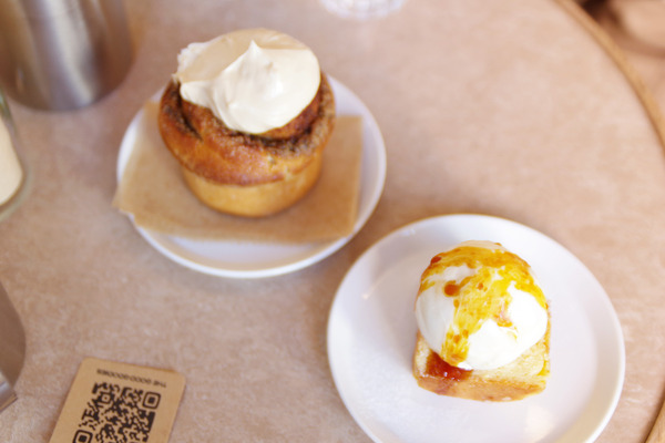 画像はありませんが店内のテーブル、ベンチ、スツールがとても素敵だなぁと思っていたらオリジナル家具とのこと。店主さんが建築を学んでいたということで、だからこその絶妙なサイズ感やエッジの美しさだと納得です。そして珈琲と合わせてオーダーしていたスイーツも到着!