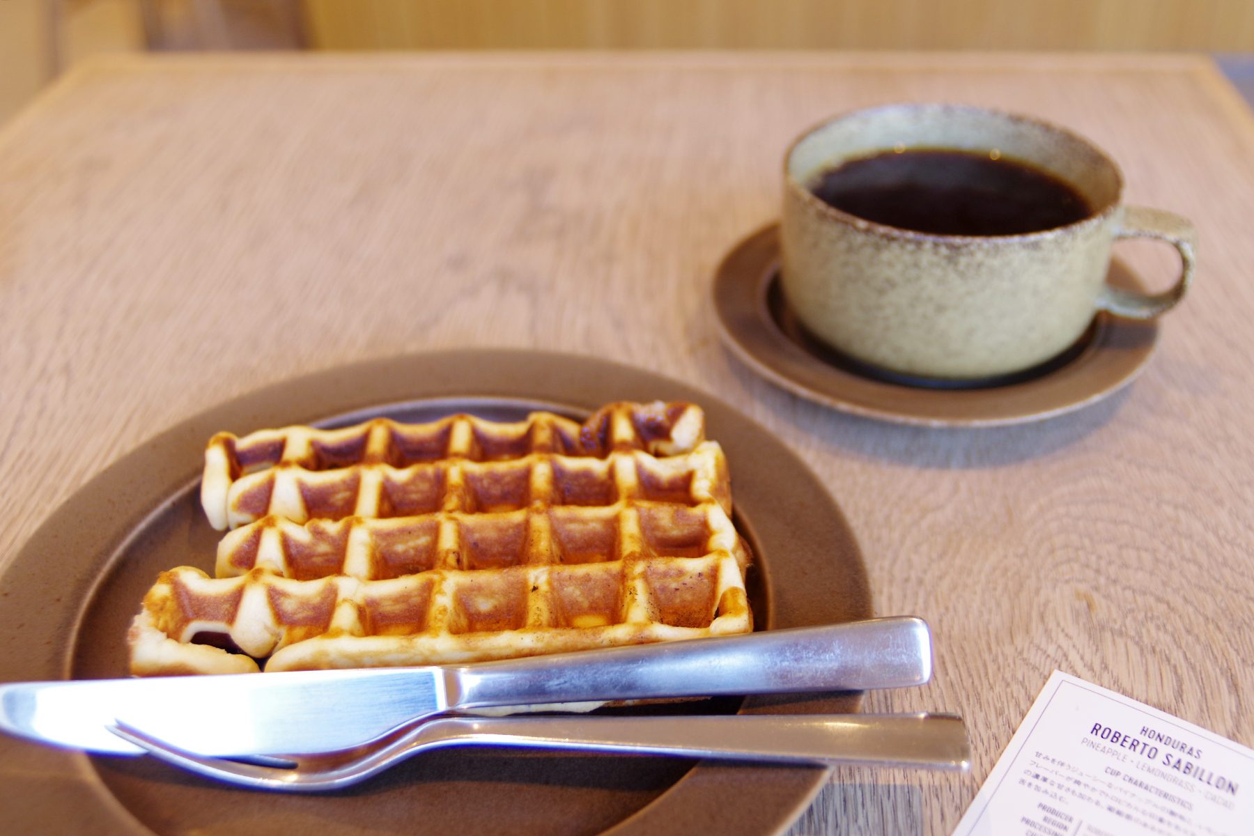 先にカウンターでお会計を済ませてから席へ。特にモーニングセットなどはないのですが、モーニングの時間に珈琲とワッフルを一緒に頼むと割引になる嬉しいサービスがありました。