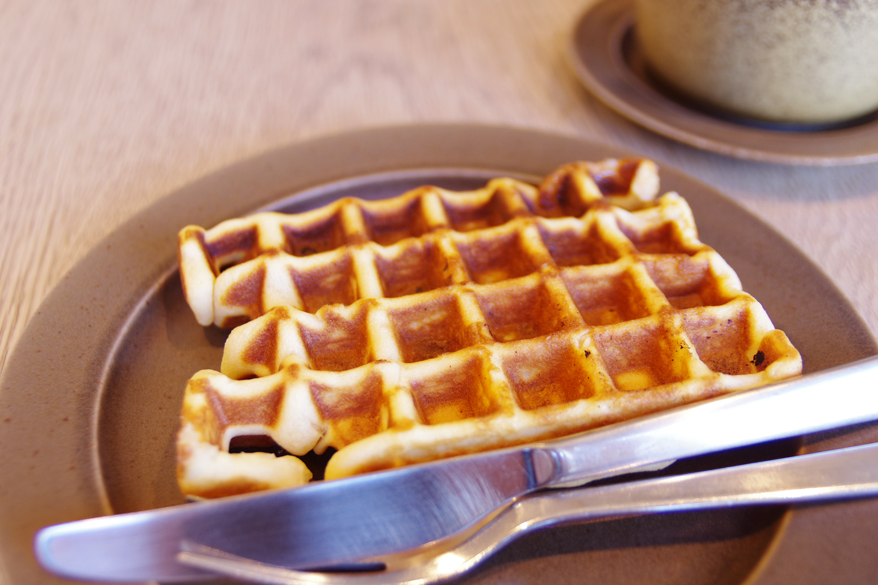 トッピングのないプレーンワッフルは国産小麦やバターミルクを使ったフィリングで、発酵バターをたっぷり使用して焼き上げたもの。外側はカリッとしつつ内側はしっとり、ふくよかな味わいのワッフルでした〜。